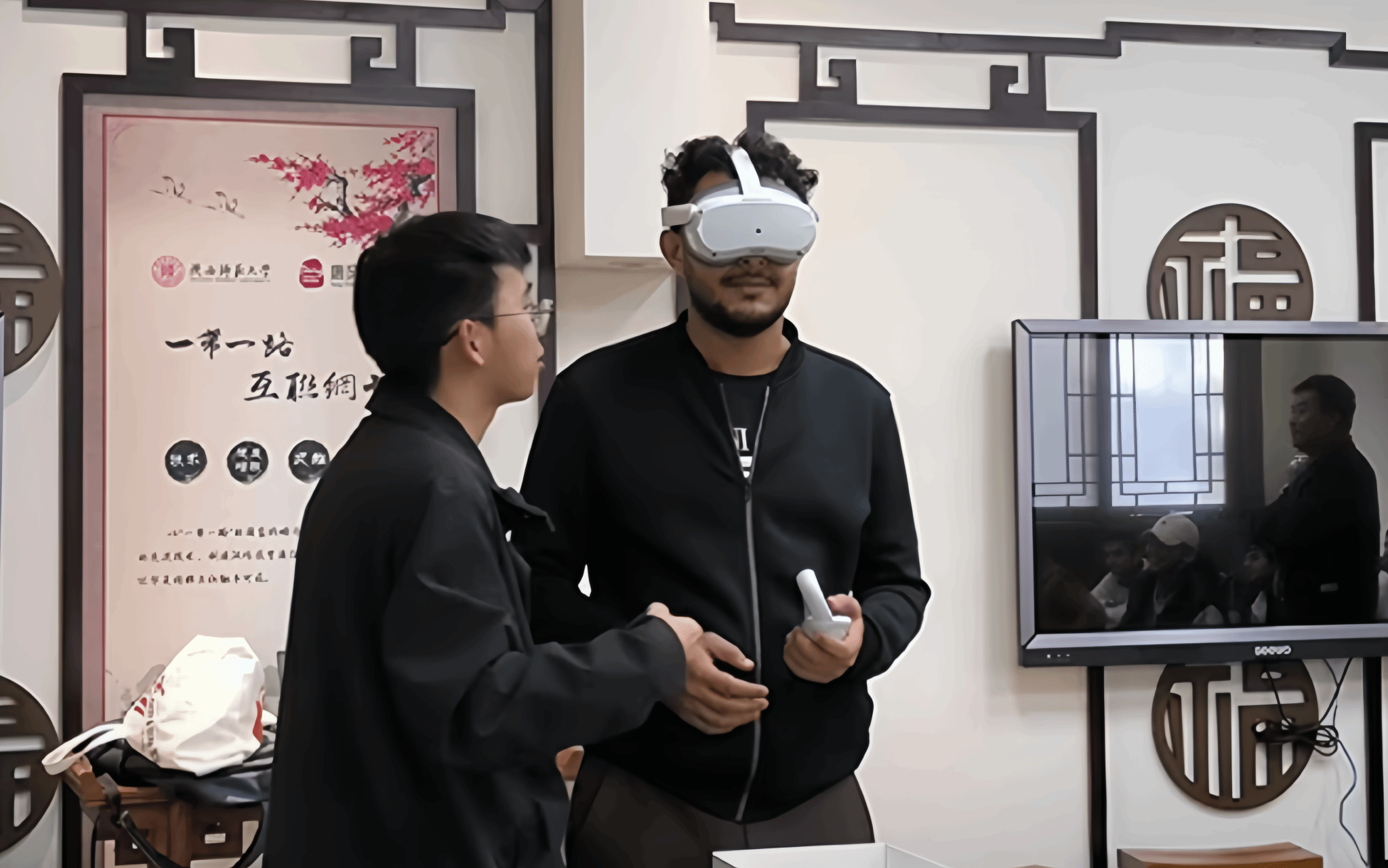 留學(xué)生參與書(shū)法VR系統(tǒng)體驗(yàn)活動(dòng)