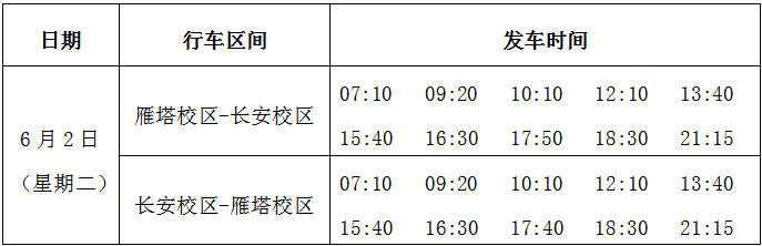 2.疫情防控期間通勤車的校外站點將臨時關閉,由長安校區發往雁塔校區的班車在鑫泰園、新西門站只下不上。