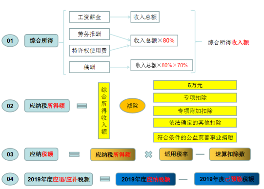1.計算2019年度的應退/應補稅額(目前“個人所得稅”APP已提供該計算功能,申報過程中系統可根據填報數據自動計算應退/應補稅額),步驟如下: