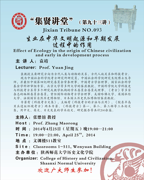 講座題目:集賢講堂:生業在中華文明起源和早期發展過程中的作用
