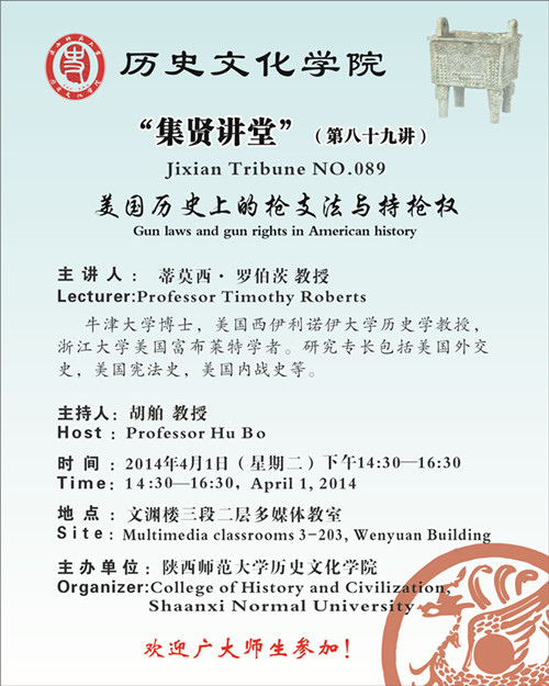 講座題目:集賢講堂:美國歷史上的槍支法與持槍權