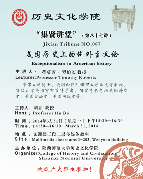 講座題目:集賢講堂:美國歷史上的例外主義論