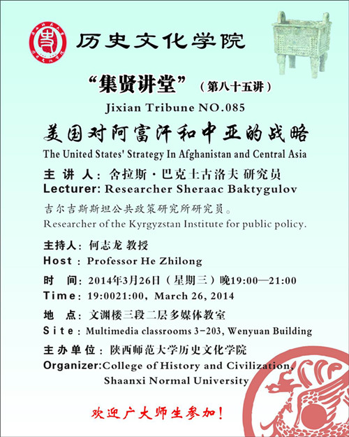 講座題目:集賢講堂:美國對阿富汗和中亞的戰略