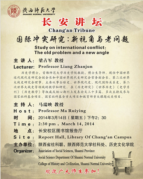 講座題目:長安講壇精品講座——國際沖突研究:新視角與老問題