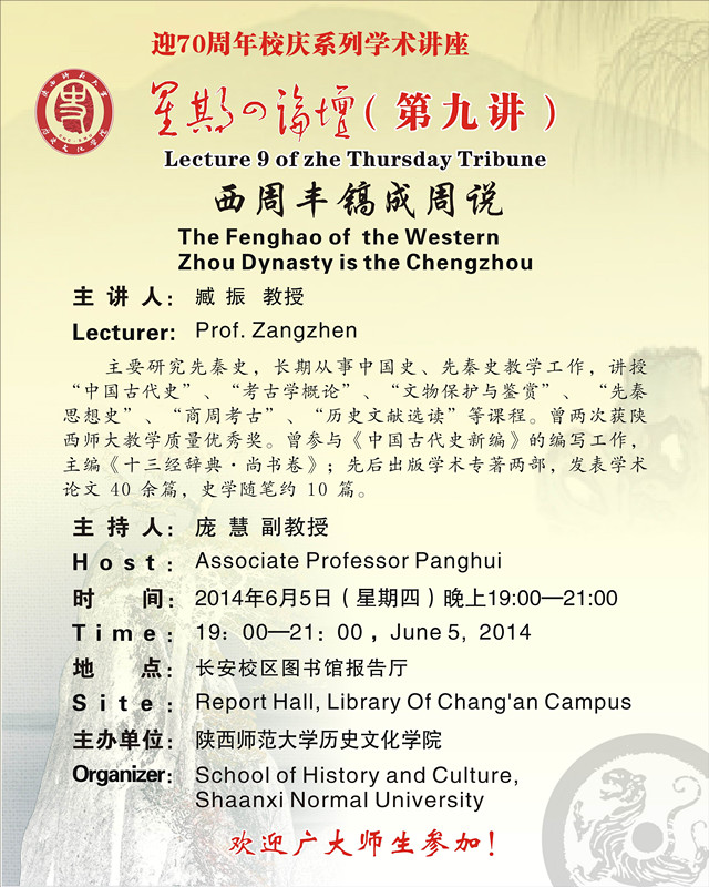 講座題目:迎70周年校慶系列學術講座之星期四論壇第九講:西周豐鎬成周說