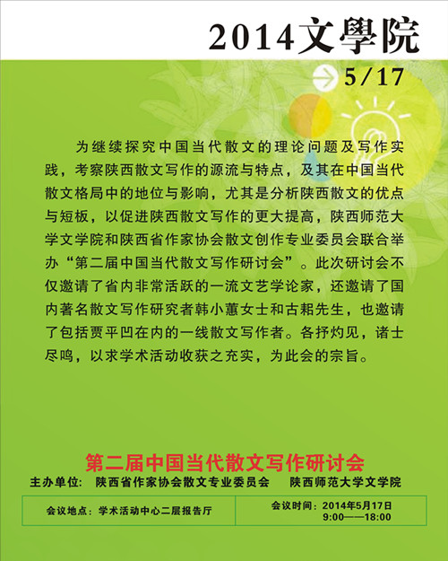 講座題目:文學院學術會議預告:第二屆中國當代散文寫作研討會