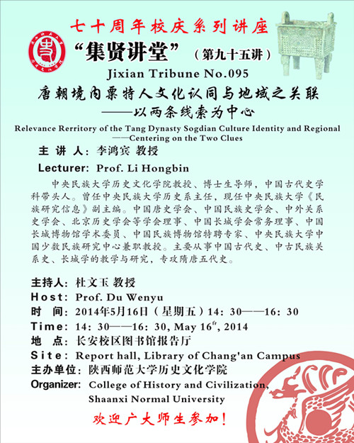 講座題目:校慶七十周年系列之集賢講堂:唐朝境內(nèi)粟特人文化認(rèn)同與地域之關(guān)聯(lián) ——以?xún)蓷l線索為中心