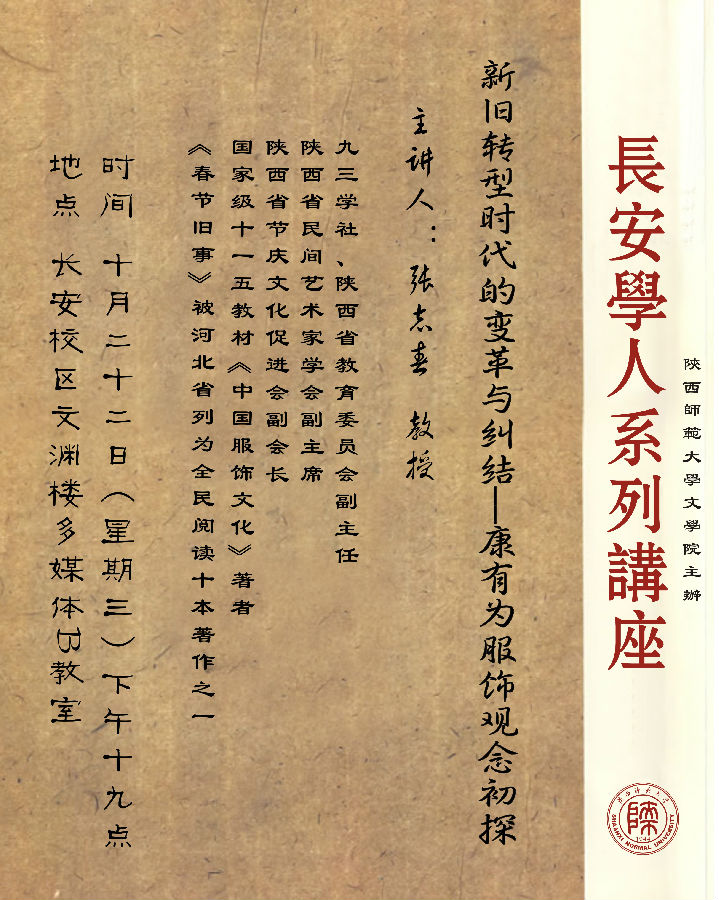 講座題目:長安學人系列講座:新舊轉型時代的變革與糾結——康有為服飾觀念初探