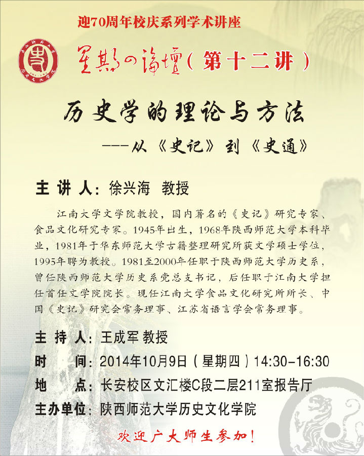 講座題目:迎70周年校慶系列學術講座之星期四論壇:歷史學的理論與方法