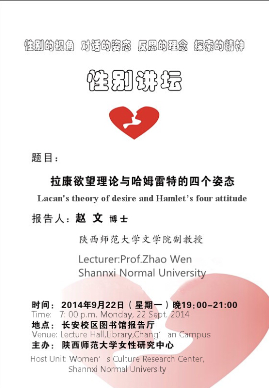 講座題目:性別講壇——拉康欲望理論與哈姆雷特的四個姿態(tài)