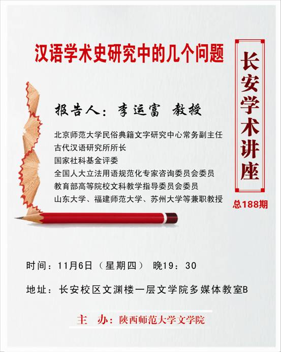 講座題目:長安學術講座:漢語學術史研究中的幾個問題