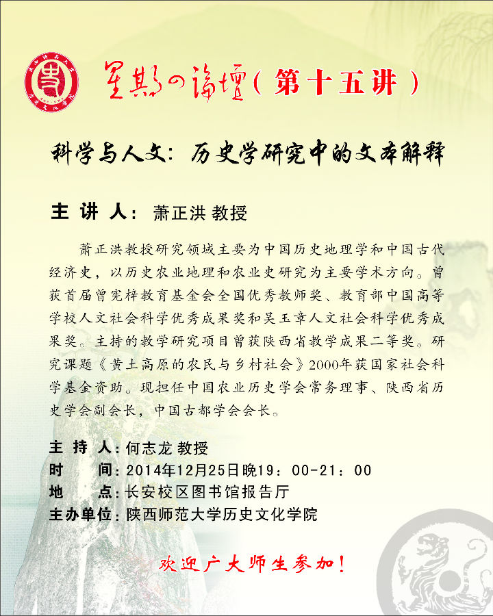 講座題目:科學與人文:歷史學研究中的文本解釋