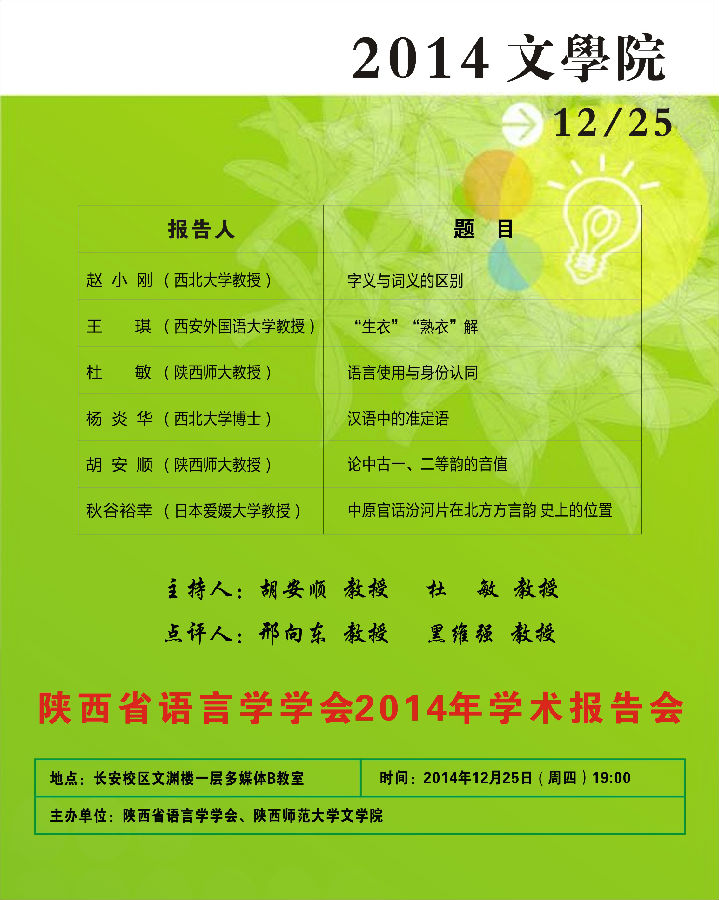 主辦單位:陜西省語言學學會 陜西師范大學文學院