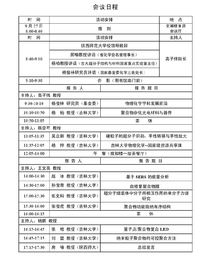 主辦單位:陜西省化學會物理化學專業委員會、應用表面與膠體化學教育部重點實驗室、陜西師范大學化學化工學院