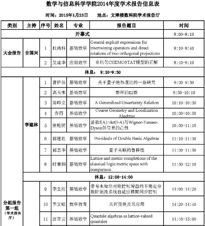 活動(dòng)類別:數(shù)學(xué)與信息科學(xué)學(xué)院2014年度學(xué)術(shù)報(bào)告