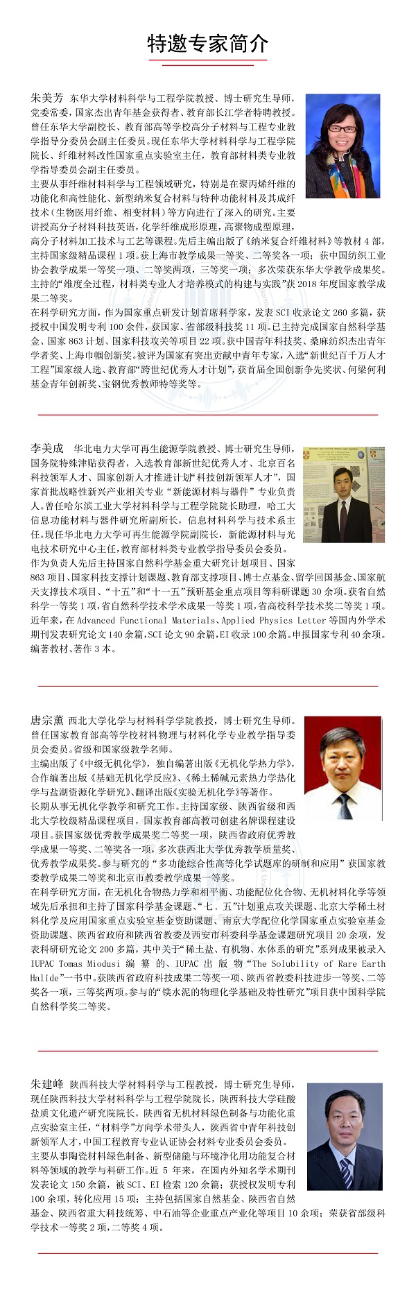 報告人: 朱美芳(東華大學)、李美成(華北電力大學)、唐宗薰(西北大學)、朱建峰(陜西科技大學)