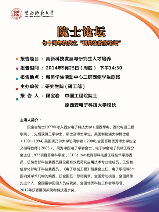 講座題目:高新科技發(fā)展與研究生人才培養(yǎng)