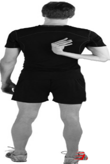 (2)單手觸摸肩胛骨,將一只手置于背后,保持肩部的放松和下垂,盡量讓這只手觸到同一側的肩胛骨,保持腰部挺直,換另一支手重復上述動作。(通常一只手比另一支手做起來容易一些)。