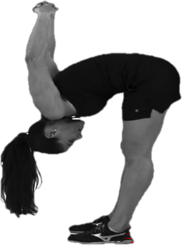 (7)雙手背后相扣前屈體,雙腳并攏站立,雙臂置于背后,雙手手指相扣,雙臂自然下垂(雙手靠近尾骨),直腿向前屈體,使額頭盡量靠近膝蓋,雙臂自然抬高。