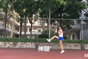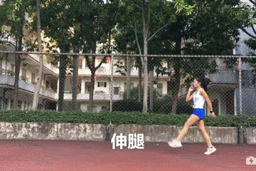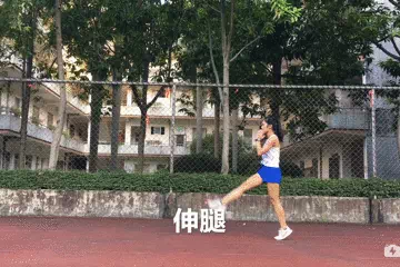 (2)伸腿,先做抬腿的動作后,利用大腿的力量腳尖向下抓地,并且注意將重心維持在最高點,腳尖落地位置與支撐腳距離一個拳頭的距離。