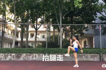 (1)抬腿走,身體站直,抬起來的腳至少90度以上,足跟可以微微跟著提起,肩膀放松,手臂自然跟著身體擺動即可。重點不在向前走多大步,而是抬腿抬膝,使用髂腰肌活動髖關節,注意力集中,重心踏穩。