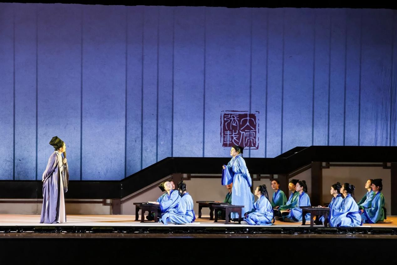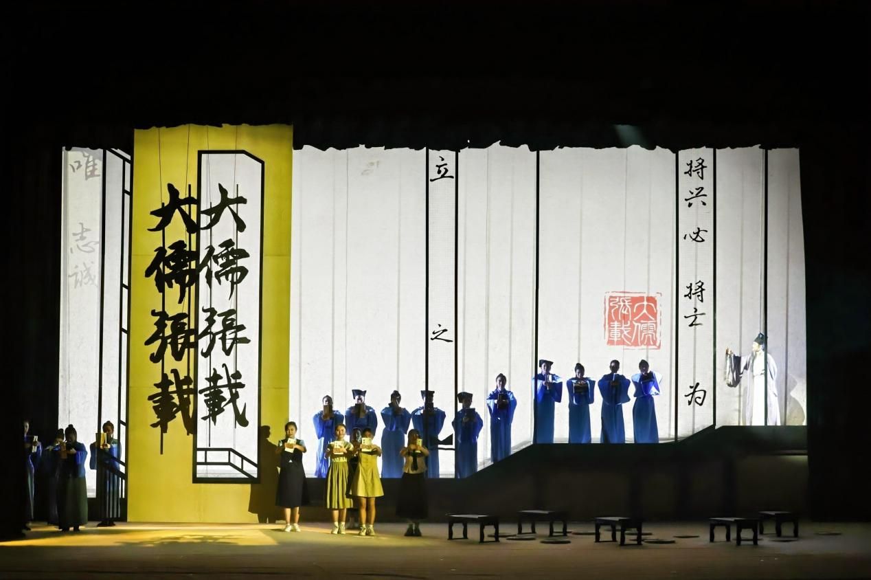 劇中,五位青年學子以“時光之芒”為線索穿越古今,引發觀眾在現實與歷史之間的心靈共鳴。戲劇采用“場景蒙太奇”技法,交融北宋書院與當代大學課堂,輔以原創舞蹈《太和之韻》致敬《正蒙》之意境,營造出沉浸式觀演體驗。劇終,“橫渠四句”如同天籟回響,張載憂國憂民、躬身實踐的形象,在觀眾心中久久回蕩。