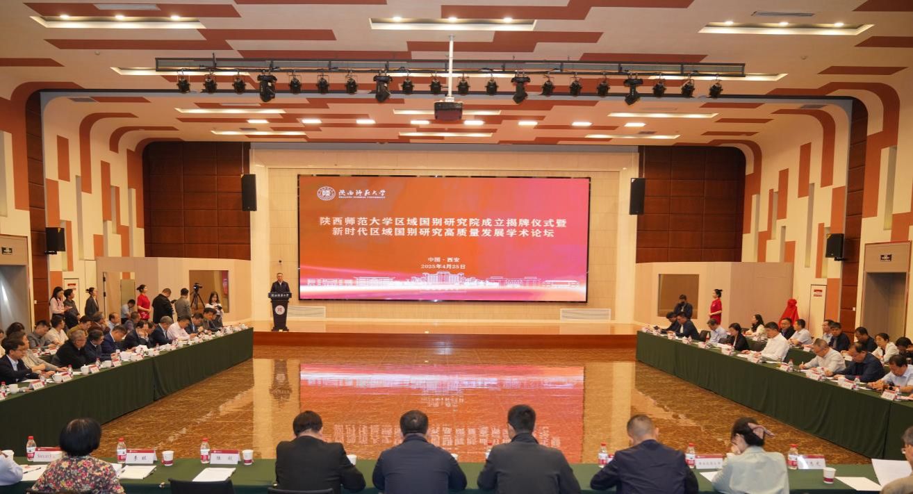 師大新聞網訊 4月25日,陜西師范大學區域國別研究院成立揭牌儀式暨新時代區域國別研究高質量發展學術論壇在我校長安校區舉行。會議由陜西師范大學主辦,教育部,陜西省委宣傳部,省委教育工委、省教育廳,省政府外事辦公室,省社科聯等單位有關負責同志,國內外高校及科研機構專家學者,以及我校黨政領導等70余人參會,共同見證陜西師范大學區域國別研究院成立,熱烈研討新時代區域國別研究的使命與方向。