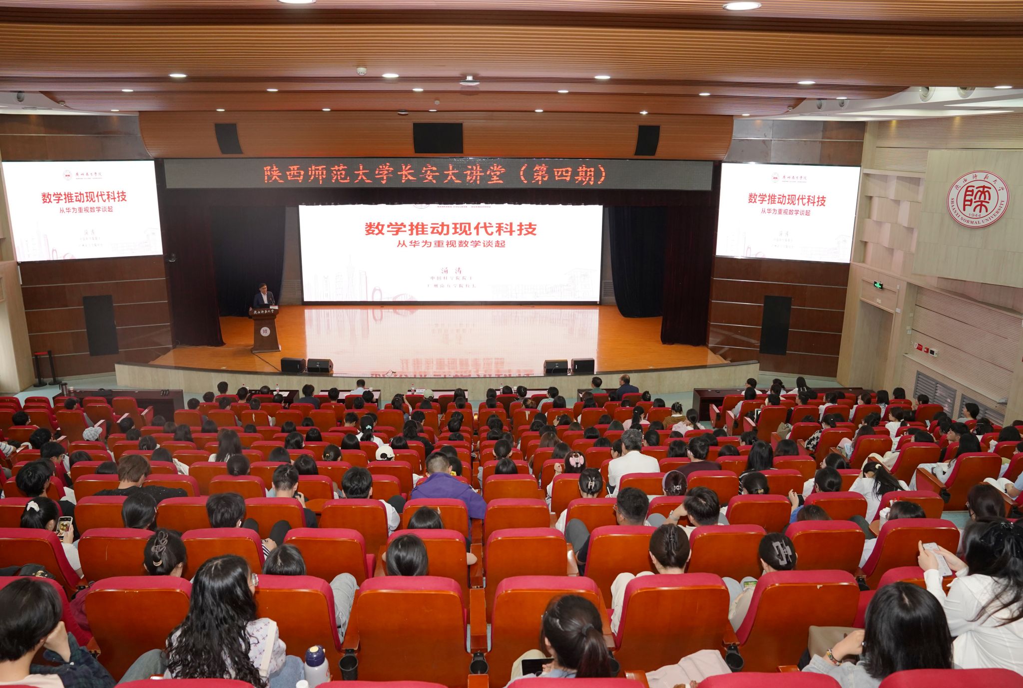 師大新聞網訊 5月8日下午,我校“長安大講堂”(第四期)在新勇學生活動中心學生劇場舉行。論壇邀請中國科學院院士湯濤教授作題為“數學推動現代科技發展”的主題報告。副校長王云博主持報告會。
