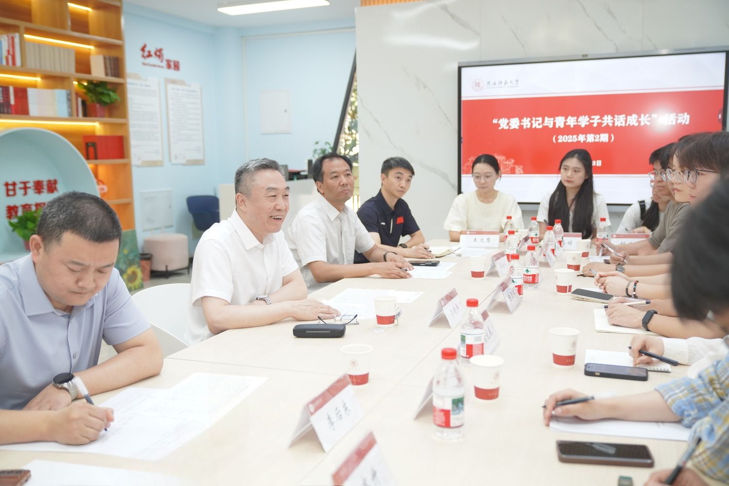 師大新聞網(wǎng)訊 5月23日下午,“黨委書記與青年學子共話成長”2025年第2期座談會在長安校區(qū)“一站式”學生社區(qū)服務空間“紅燭家園”舉行,校黨委書記李曉兵與來自不同學院(部)的2025屆畢業(yè)生學生代表座談交流、共話成長。這次共話成長的主題是“職業(yè)啟航與未來成長”。