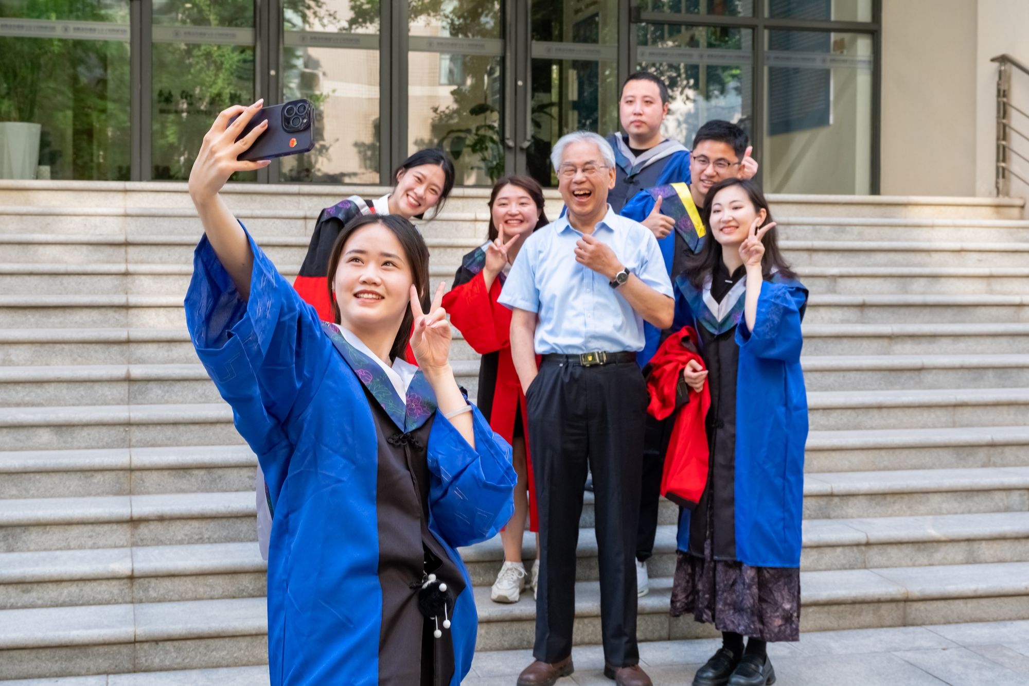 房喻院士和畢業(yè)生在一起